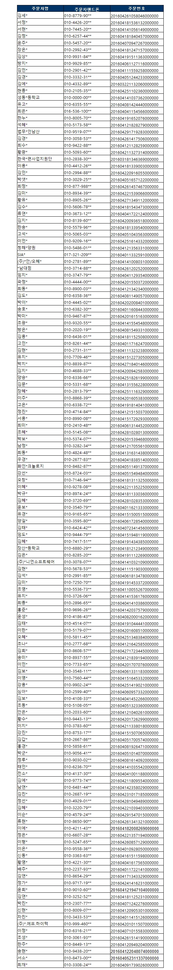 2016년 5월 13일(금) 주문자 핸드폰 번호로 발송