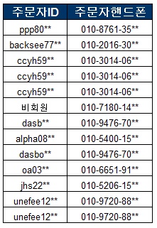 2016년 7월 13일(수) 주문자 핸드폰 번호로 발송