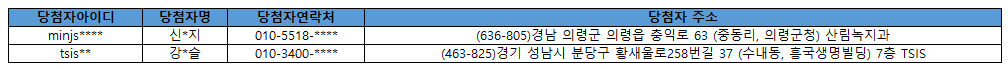 다시금 당첨되신 고객님들 모두 축하드리며,