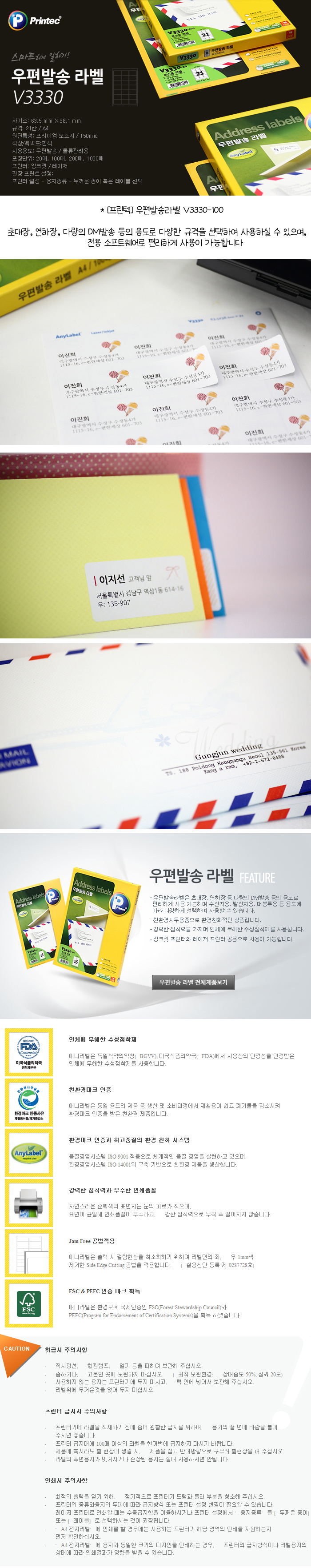 [프린텍] 우편발송라벨 V3330-100(100매/21칸)