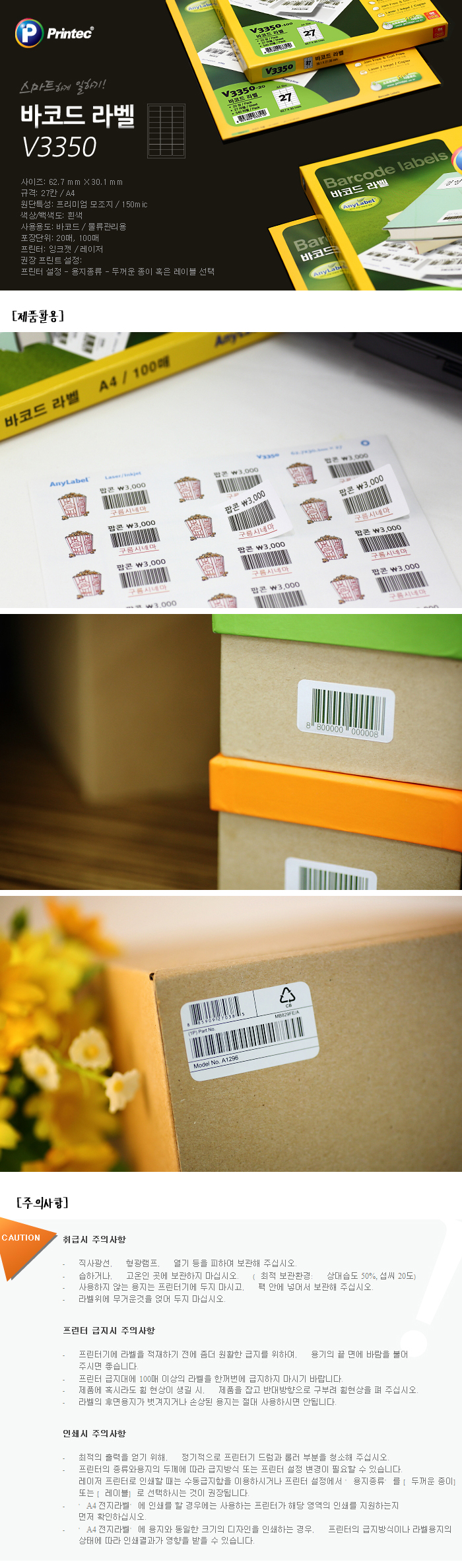 ★4월 월간특가★ [프린텍] 바코드라벨 V3350-100(100매/27칸)